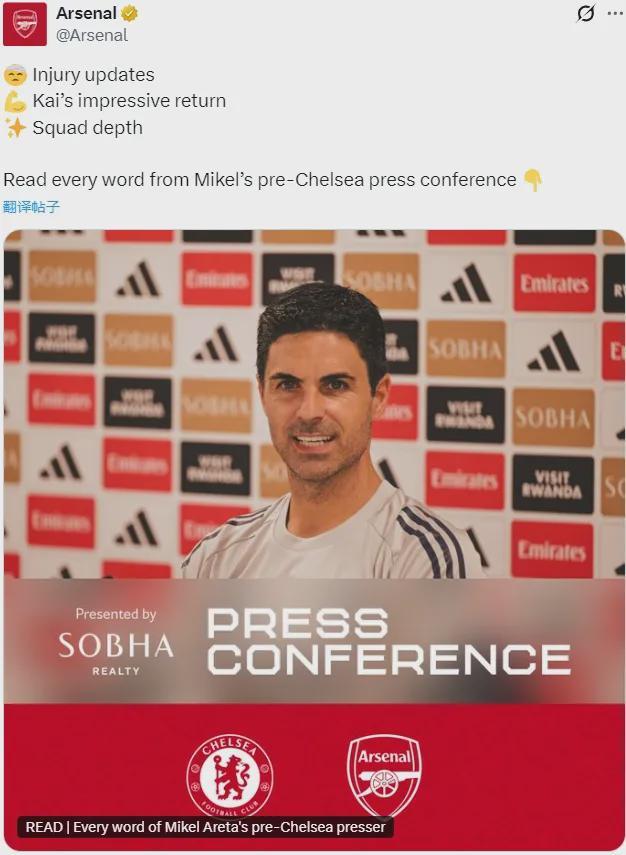 阿尔特塔出席了赛前新闻发布会,我们来看看阿森纳主帅提到了哪些重点内容。